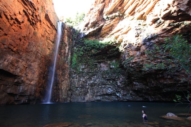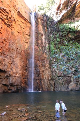 OK we will swim in the pool at the base of Florence Falls – beautiful. Check ot the boys under the waterfall.