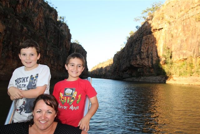 When we arrived in Batchelor we decidied to go up to Darwin for the afternoon/evening. Darwin is fantastic. I think it is a cross between the Gold Coast & Bali. First we learnt about Cyclone Tracey at the Art & Museum Gallery. Then we spent most of the day at Crocosaurus Cove – there you can explore 3 levels of crocs, reptiles and exhibitions. The boys fed young crocs then swam in a pool next to them. Check out the pics.