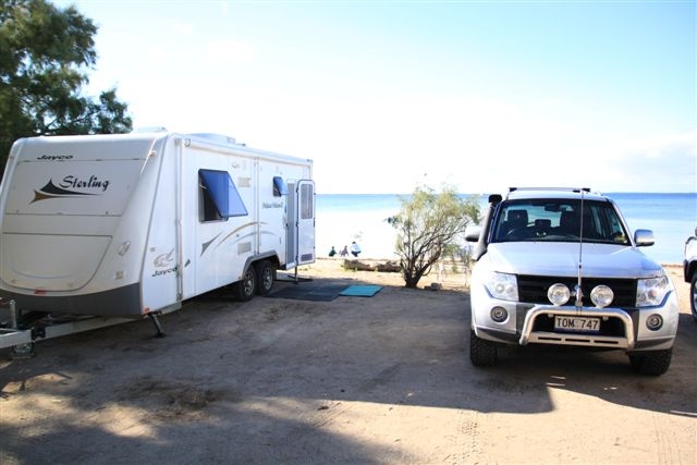 We then went to to a place in Streaky Bay called Mocean (get it “motion”) for lunch before taking a drive to Cape Bauer, not far from the caravan park we were staying in. We stopped at a place on the way around this loop road to Cape Bauer called Whistling Rocks, where I took some video and will try and put it onto the site for you to view.
